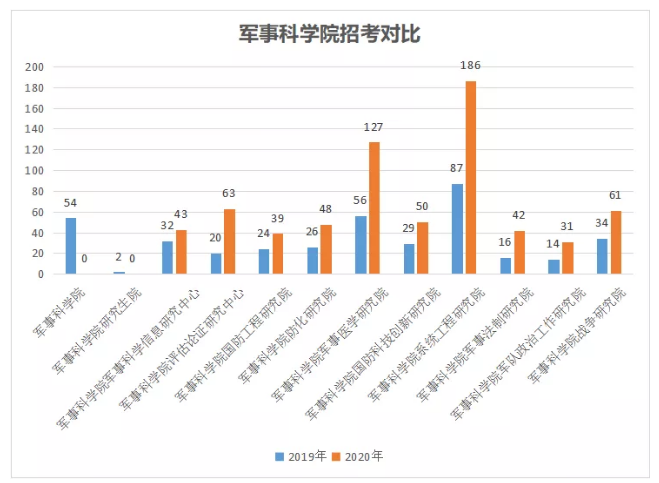 2019年和2020年軍事科學(xué)院各機(jī)構(gòu)招錄人數(shù)對(duì)比數(shù)據(jù)