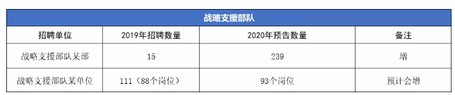 戰(zhàn)略支援部隊(duì)是一個(gè)大的系統(tǒng),根據(jù)已經(jīng)發(fā)布的機(jī)構(gòu)崗位數(shù)量來(lái)看,新增的招考數(shù)量和崗位數(shù)量都有明顯的變化,預(yù)計(jì)戰(zhàn)略支援部隊(duì)招錄文職人員會(huì)更多。